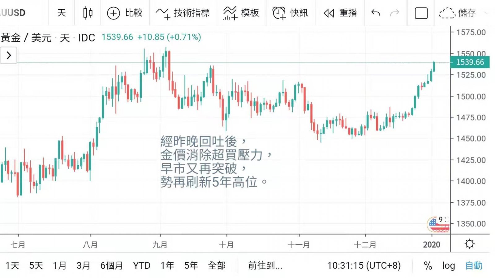 如筆者早前預期,金價經第四季調整後,達入2020年定必發力向上,
