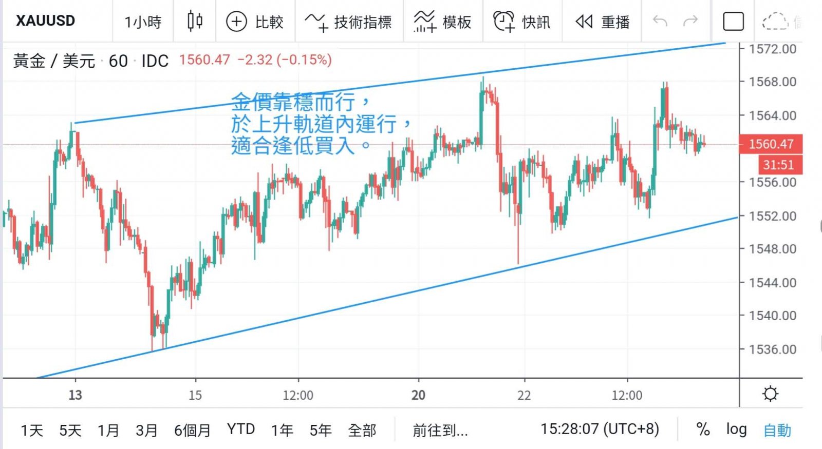 但以美元現時強勢仍未對金價帶來太大傷害,相信再突破機會較高,短線下方,只要繼續守穩1557及1553支持,